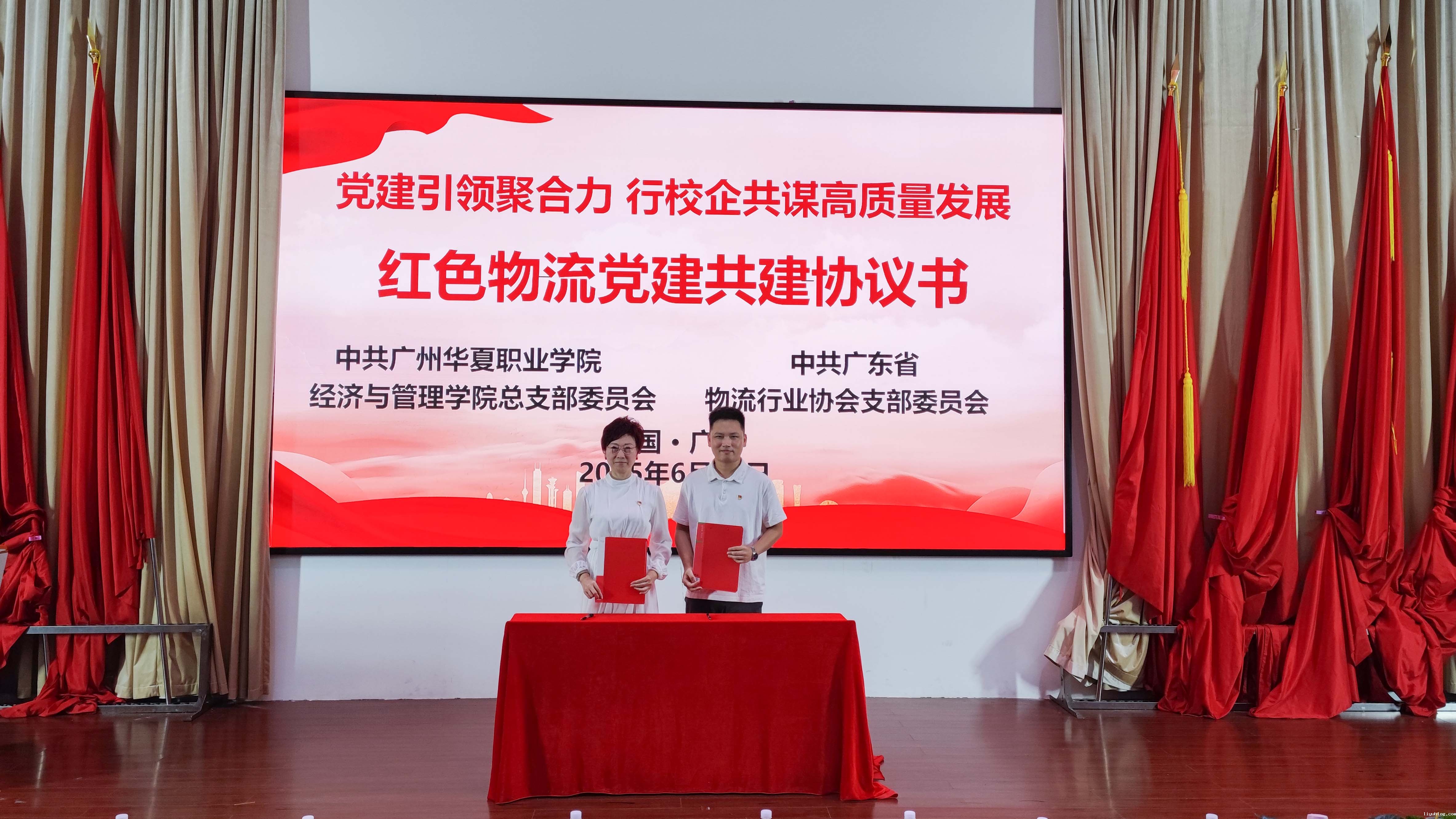 在与会嘉宾和领导的共同见证下,协会党支部书记梁玉霞与学院经济与管理学院党总支副书记谢晓磊现场签署了“红色物流党建联盟共建协议书”。双方将以党建共建为坚实桥梁,不断拓展合作领域,创新合作模式,目标直指共同培养高素质技术技能人才,合力推动行业实现更高质量发展。