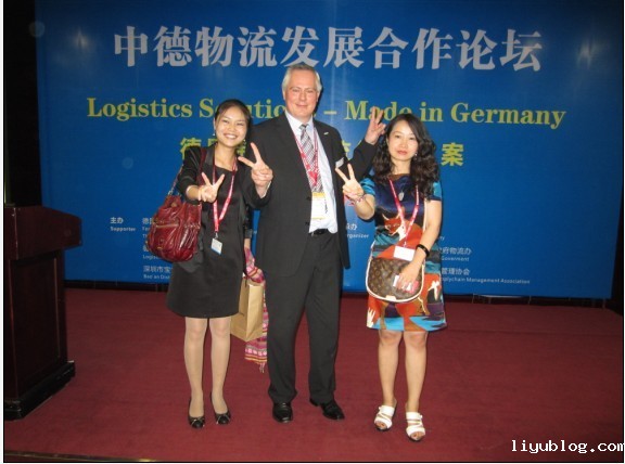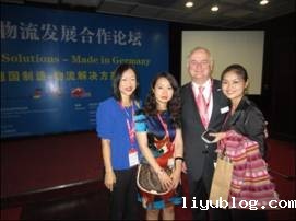 (与德国联邦交通建设与城市规划部货运物流处Norbert Tiedemann及德国工商总会陈婷女士合影)
